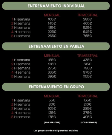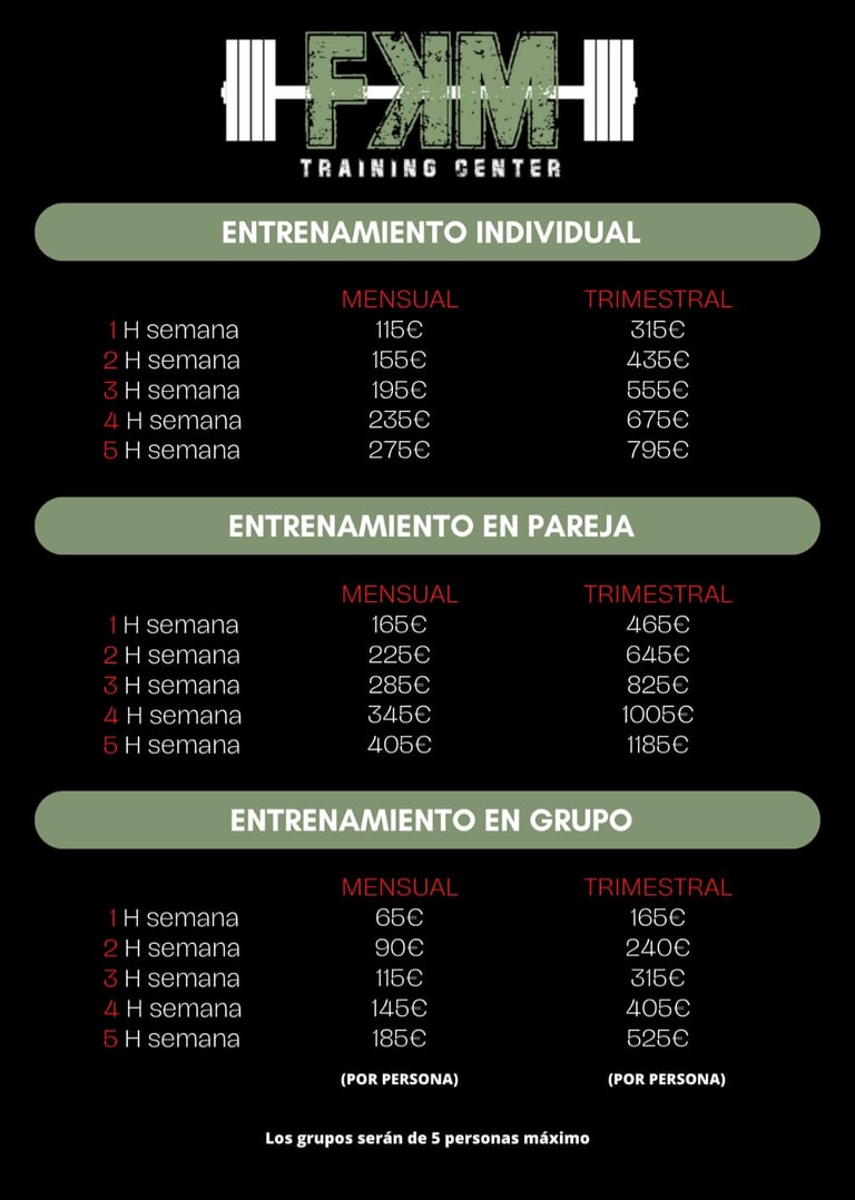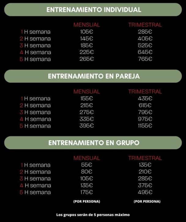 En grupo: máximo 5 personas, ideal para entrenar en equipo manteniendo la atención del entrenador.